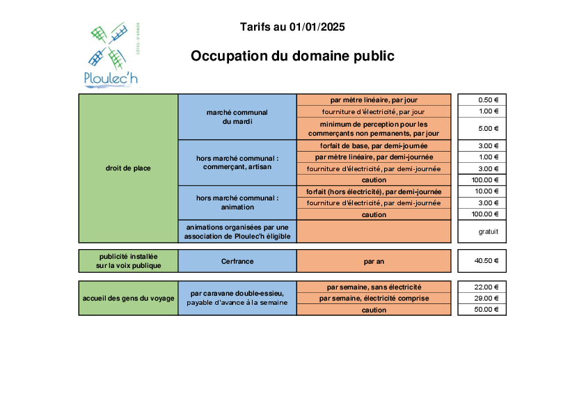 - de tarifs avantageux par rapport aux autres usagers de Ploulec’h (voire de gratuités),