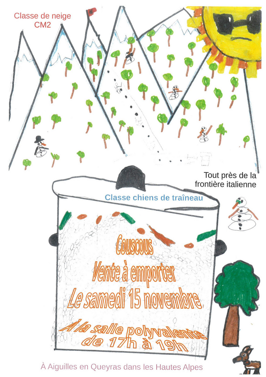 Commandez dès maintenant votre couscous en faveur de la classe de neige des CM2! Des bons de commandes sont disponibles à la mairie.