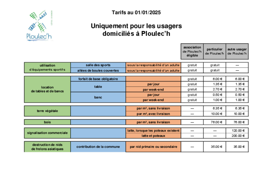 - de tarifs avantageux par rapport aux autres usagers de Ploulec’h (voire de gratuités),